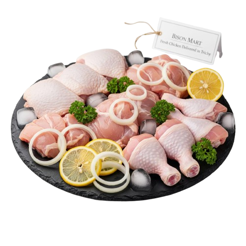 Welcome to Bison Mart, Trichy’s favourite online karikadai and butcher meat shop. Enjoy premium-quality chicken, mutton, and fish delivered fresh every day to your doorstep. Each order is hygienically processed, neatly packed, and handled by professional butchers — so you can cook with confidence and taste the freshness in every bite.