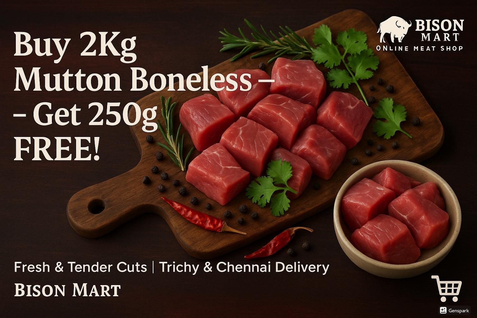Bisonmart began with a simple yet powerful mission: to make buying fresh meat online simple, safe, and reliable. What started as a small idea has grown into a trusted name in online meat delivery in Trichy, known for delivering premium-quality meat, seafood, and poultry straight to your home.